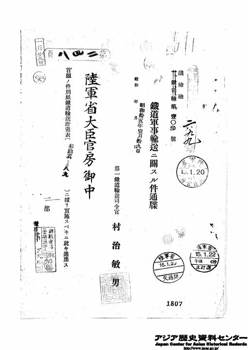- 鉄道軍需輸送に関する件