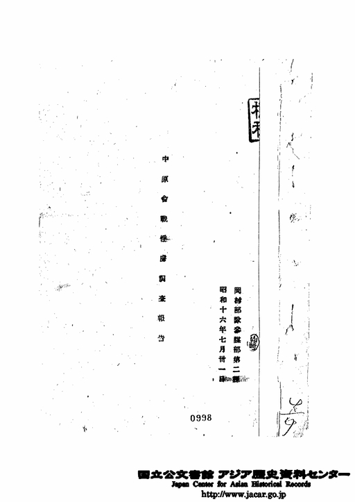 - 中原会戦俘虜調査報告 昭和16年7月31日 岡村部隊参謀部第2課