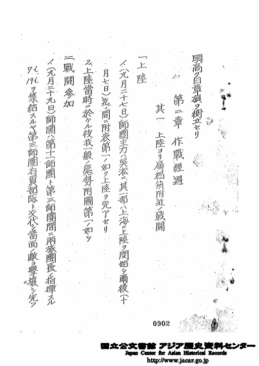 “Chapter 2 Operation progress” Japan Center for Asian Historical Records (JACAR) Ref.C11111751300, Description of China incident/ Intendance Department of ninth forces From September, 1937 to June, 14 (National Institute for Defense Studies)