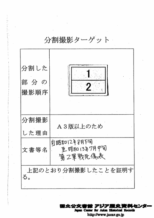 - 附表 第2軍戦死傷表 自昭和12年8月下旬至昭和13年7月中旬