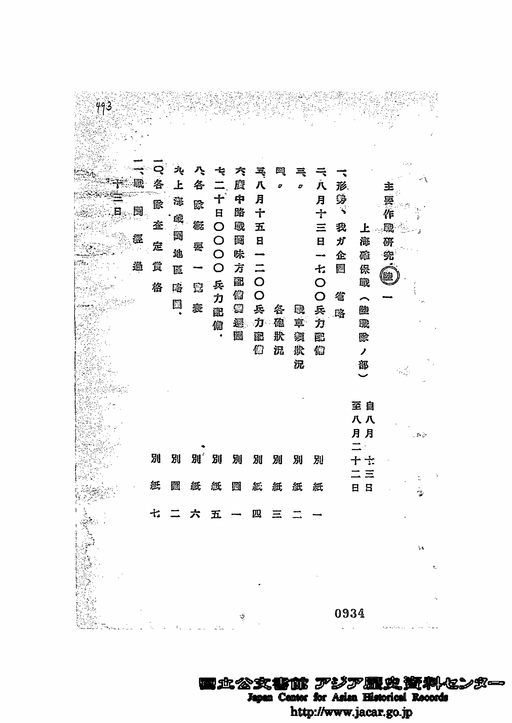 - 主要作戦研究 陸1 上海確保戦(陸戦隊の部) 自8月13日至8月22日
