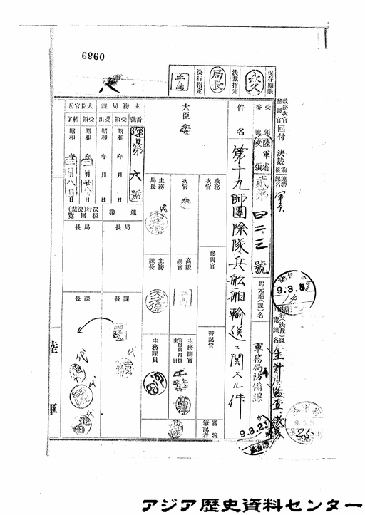 「第19師団除隊兵船舶輸送に関する件」JACAR(アジア歴史資料センター)Ref.C01001338700、永存書類甲輯第5類第2冊 昭和9年(防衛省防衛研究所)
