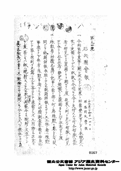 「第94号 石兵団会報綴」JACAR(アジア歴史資料センター)Ref.C11110068900、第62師団会報綴 (独立速射砲第22大隊受領)(防衛省防衛研究所)