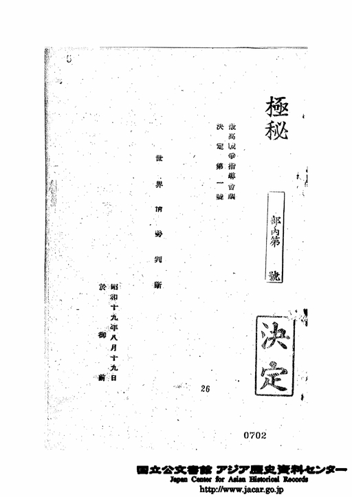 「5、昭和19年8月19日 世界情勢判断/中表紙」JACAR(アジア歴史資料センター)Ref.C12120226700、重要国策決定綴 其6 昭和19年8月4日~20年3月29日(防衛省防衛研究所)