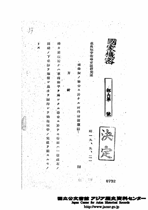 - 重要国策決定綴 其6 昭和19年8月4日~20年3月29日