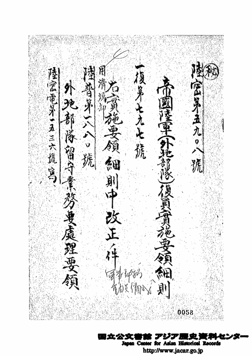 「帝国陸軍(外地部隊) 復員實施要領細則」JACAR(アジア歴史資料センター)Ref.C13070030700、帝国陸軍(外地部隊) 復員実施要領細則(防衛省防衛研究所)