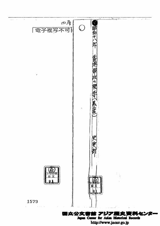 「表紙「香港軍政の概要(素案)」 昭和18年」JACAR(アジア歴史資料センター)Ref.C13071188000、香港軍政の概要(素案) 昭和18年(防衛省防衛研究所)