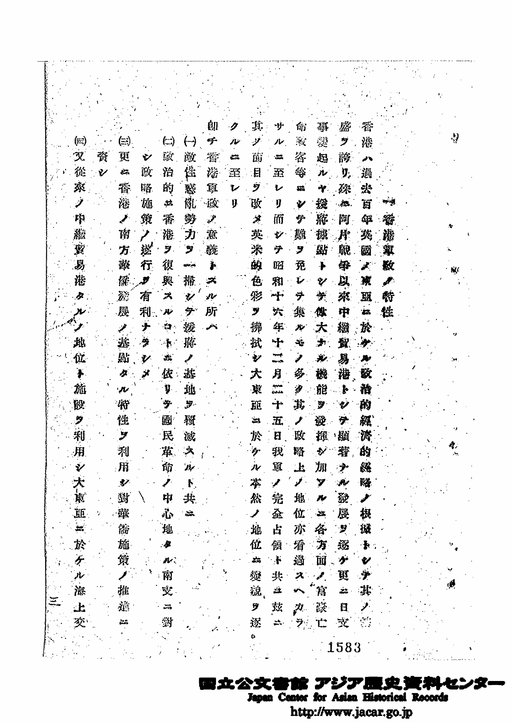 「1 香港軍政ノ特性」JACAR(アジア歴史資料センター)Ref.C13071188200、香港軍政の概要(素案) 昭和18年(防衛省防衛研究所)