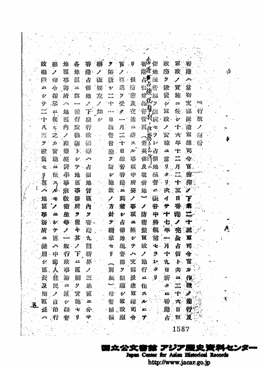 「3 行政ノ運営」JACAR(アジア歴史資料センター)Ref.C13071188400、香港軍政の概要(素案) 昭和18年(防衛省防衛研究所)