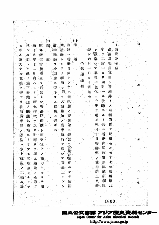 「8 交通通信」JACAR(アジア歴史資料センター)Ref.C13071188800、香港軍政の概要(素案) 昭和18年(防衛省防衛研究所)