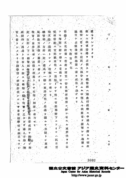 「10 教育文化」JACAR(アジア歴史資料センター)Ref.C13071189000、香港軍政の概要(素案) 昭和18年(防衛省防衛研究所)