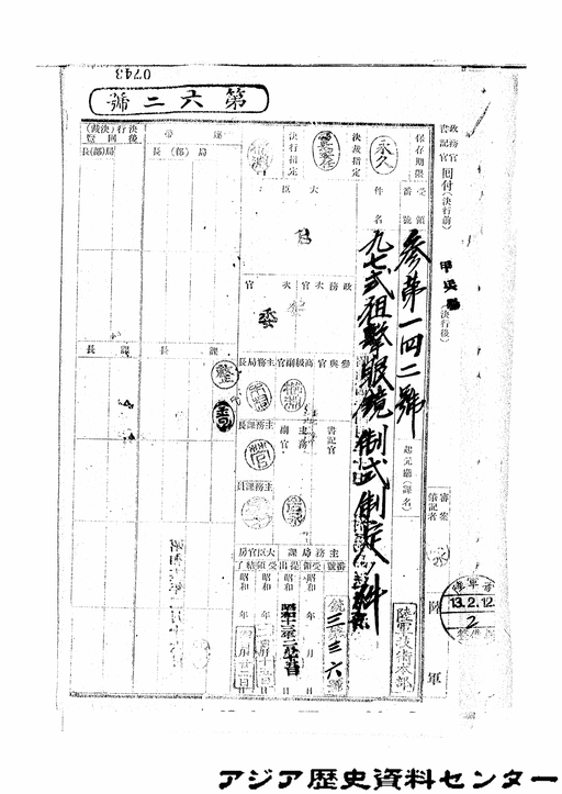 “Authorizing standard for Model 97 sniper's eye glass” Japan Center for Asian Historical Records (JACAR) Ref.C01001740200, Dainikki Koshu, 1939 (National Institute for Defense Studies)