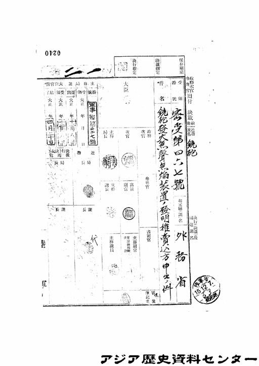 “Offer to purchase the rights accompanying to the invention of a device causing no smoke or flame when arms or cannons were fired” Japan Center for Asian Historical Records (JACAR) Ref.C01003738000, Mitsu Dainikki, 3 of 6, 1927 (National Institute for Defense Studies)