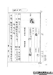 「Conscription age person handling, 4th Division」JACAR(Japan Center for Asian Historical Records)Ref.C06022037300、April 1895 "1894-1895 War Diary Ko"(National Institute for Defense Studies of the Ministry of Defense)