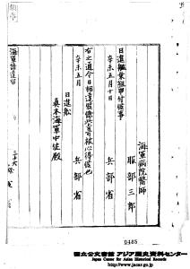 Navy instructions record Hattori Saburo Nisshin boarding Warship matter Same Warship notice and another matter