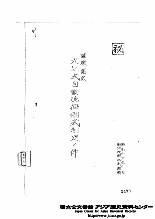 - [Data in English is under preparation] 59.97式自動砲仮制式制定の件 昭和13年10月 陸軍技術本部調製