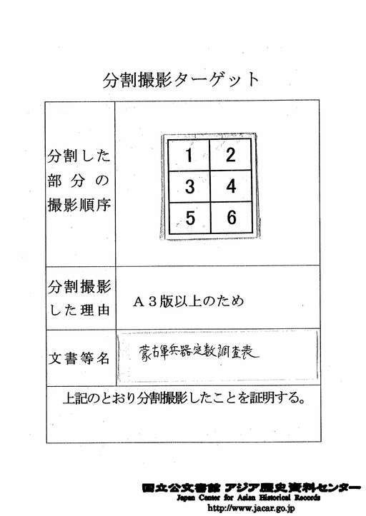 “Mongolian Army arms relation (5)” Japan Center for Asian Historical Records (JACAR) Ref.C13021539800, Mongolian Army arms relation (National Institute for Defense Studies)