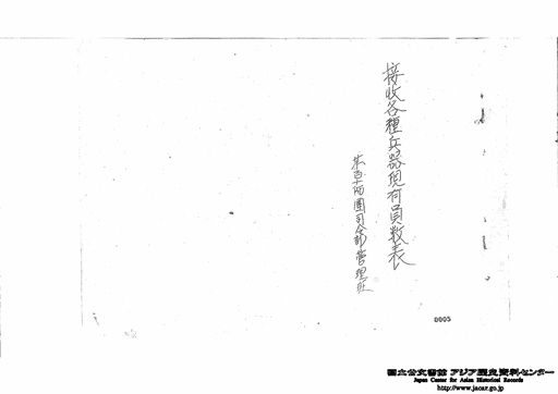 “Luoyang / Condemned various types weapons currently possessed number table” Japan Center for Asian Historical Records (JACAR) Ref.C15011111400, Condemned various types weapons currently possessed number table September, 1945 (National Institute for Defense Studies)