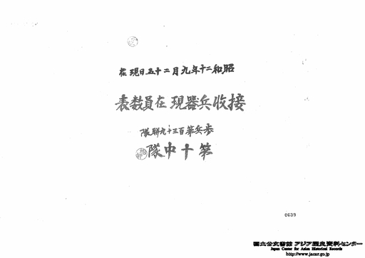 “Yanshi Heishiguan / 139th Infantry Regiment 10th Company Condemned weapons current number table as of September 25, 1945” Japan Center for Asian Historical Records (JACAR) Ref.C15011117400, Condemned various types weapons currently possessed number table September, 1945 (National Institute for Defense Studies)