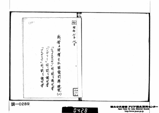 • 戦債及賠償支払猶予問題ノ概説 (二)/「チェツコスロバキア」「ハンガリ-」「ブルガリア」各国ニ関スル議定書/1932年
