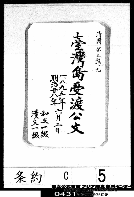 「台湾受渡に関する公文」JACAR(アジア歴史資料センター)Ref.B13090895300、日清媾和条約(C5)(外務省外交史料館)