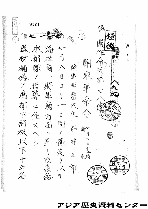 「関東軍命令の件」JACAR(アジア歴史資料センター)Ref.C01003479500、昭和14年 「満受大日記 第13号」(防衛省防衛研究所)