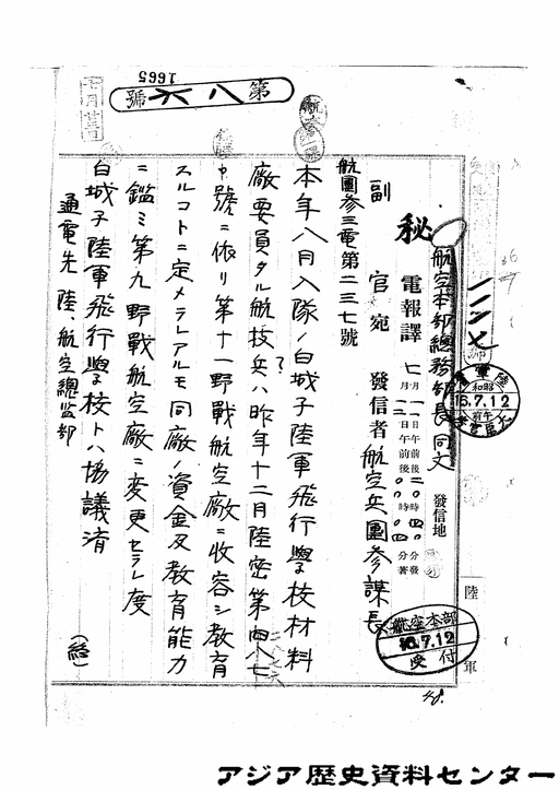 「材料廠要員たる航技兵の教育に関する件電」JACAR(アジア歴史資料センター)Ref.C01003704100、昭和16年 「陸満密大日記 第10冊 5/6」(防衛省防衛研究所)