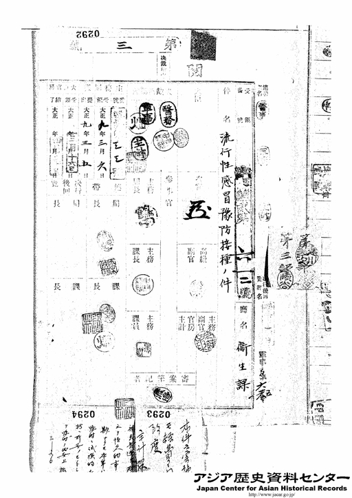「流行性感冒予防接種の件」JACAR(アジア歴史資料センター)Ref.C02030968000、永存書類甲輯第5類第2冊 大正9年(防衛省防衛研究所)