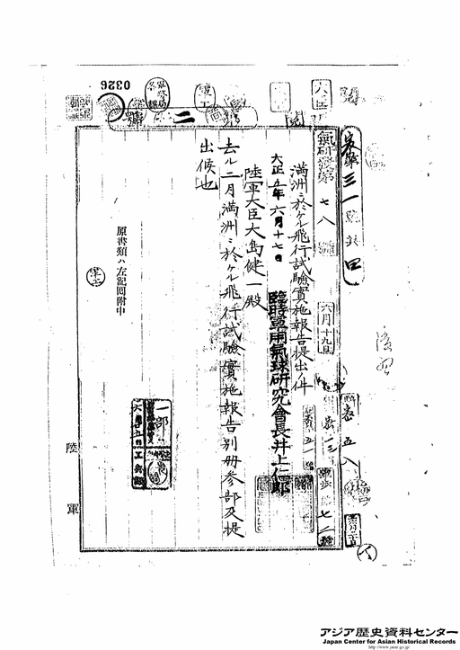 「満洲に於ける飛行機試験実施報告提出の件」JACAR(アジア歴史資料センター)Ref.C03022412500、密大日記 4冊の内 2 大正6年(防衛省防衛研究所)