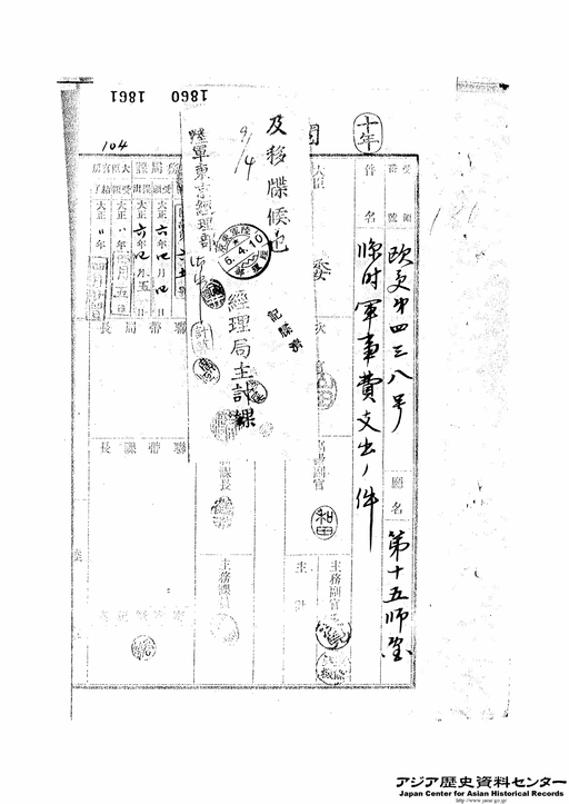 「臨時軍事費支出の件」JACAR(アジア歴史資料センター)Ref.C03024758600、欧受大日記 大正6年4月(防衛省防衛研究所)