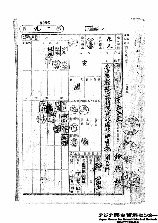 「名古屋工廠航空器材製造設備移転実施に関する件」JACAR(アジア歴史資料センター)Ref.C04120690400、支受大日記(密)其73 73冊の内 昭和13年自12月26日至12月29日(防衛省防衛研究所)