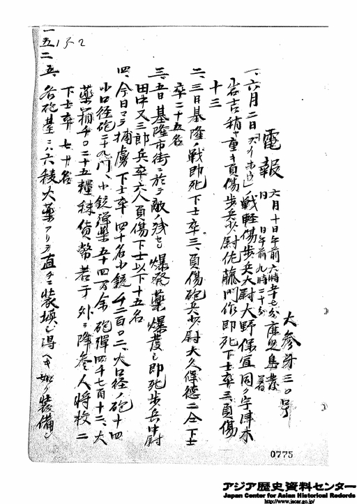 「6.10 基隆の戦と死傷者並に捕虜の数 大島少将」JACAR(アジア歴史資料センター)Ref.C06061971200、明治28年自1月至12月 「情報 共3冊(2) 庶」(防衛省防衛研究所)