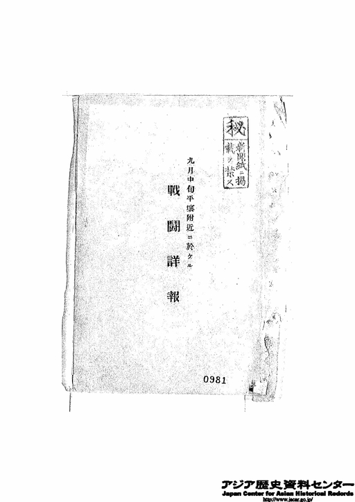 - 明治27年9月12日至明治28年4月2日 「第1軍 戦闘詳報」