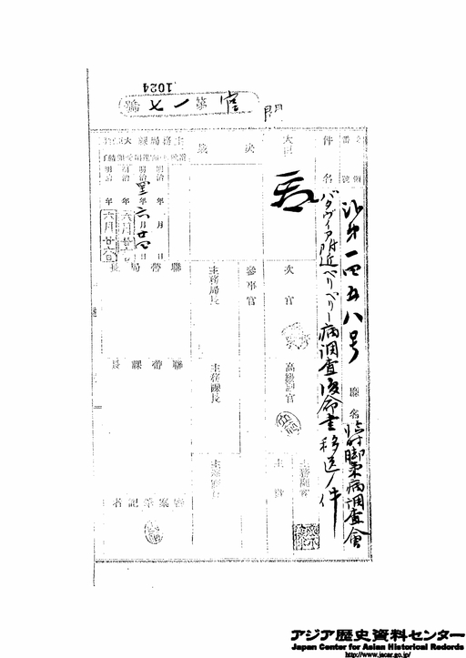 「臨時脚気病調査会ベリベリー調査復命書移送の件」JACAR(アジア歴史資料センター)Ref.C06084738800、明治42年乾「貳大日記6月」(防衛省防衛研究所)