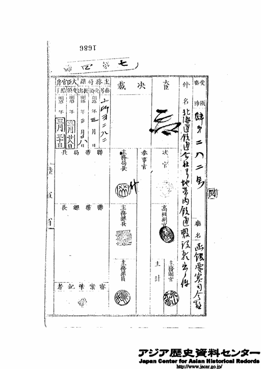 - 北海道鉄道会社より地帯内鉄道敷設願の件