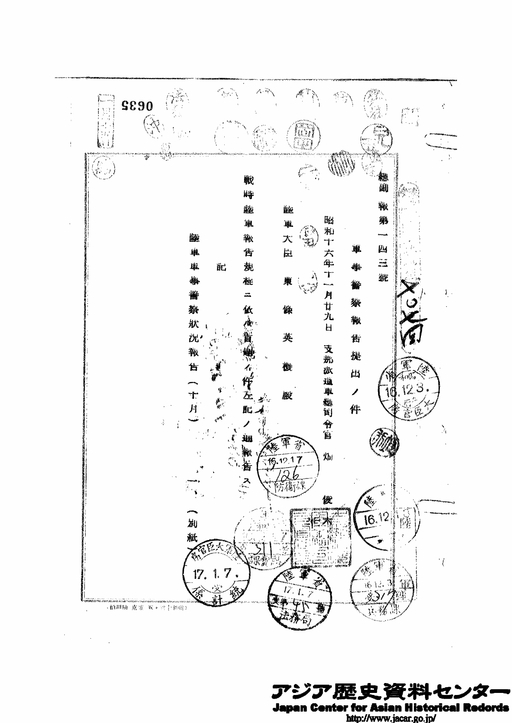 「軍事警察報告提出の件」JACAR(アジア歴史資料センター)Ref.C07092110200、陸支普大日記 第2号 昭和17年(防衛省防衛研究所)