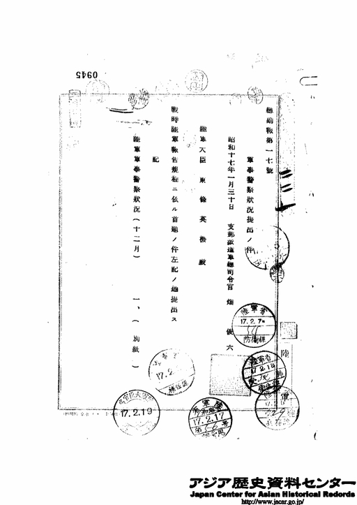 「軍事警察状況提出の件」JACAR(アジア歴史資料センター)Ref.C07092201600、陸支普大日記 第7号 昭和17年(防衛省防衛研究所)
