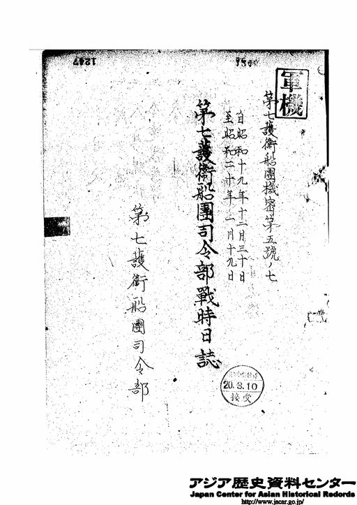 - 昭和19年4月9日~昭和20年1月19日 第7護衛船団司令部戦時日誌戦闘詳報