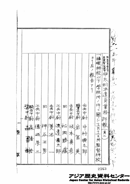 「欧第215号其53 10月12日 自大正7年12月12日 至大正8年7月26日 伊太利派遣員業務詳報(其2)」JACAR(アジア歴史資料センター)Ref.C08040152600、「大正3.4年以降戦役出兵 其4の内其1 業務詳報綴 (総受領簿を付す)(人事局(恩賞課を除く) 軍務局(軍事課を除く) 法務局)陸軍省」(防衛省防衛研究所)