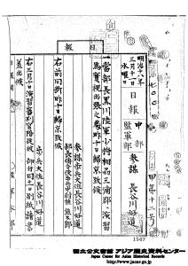 「参謀本部 監軍本部 憲兵本部 日報 総務局(7)」JACAR(アジア歴史資料センター)Ref.C09060060400、自明治18年1月至6月 日報 参謀・監軍・憲兵本部(防衛省防衛研究所)
