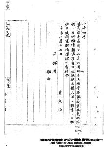 乙1大日記 間栖勝蔵乗艦志願の件東京府副申