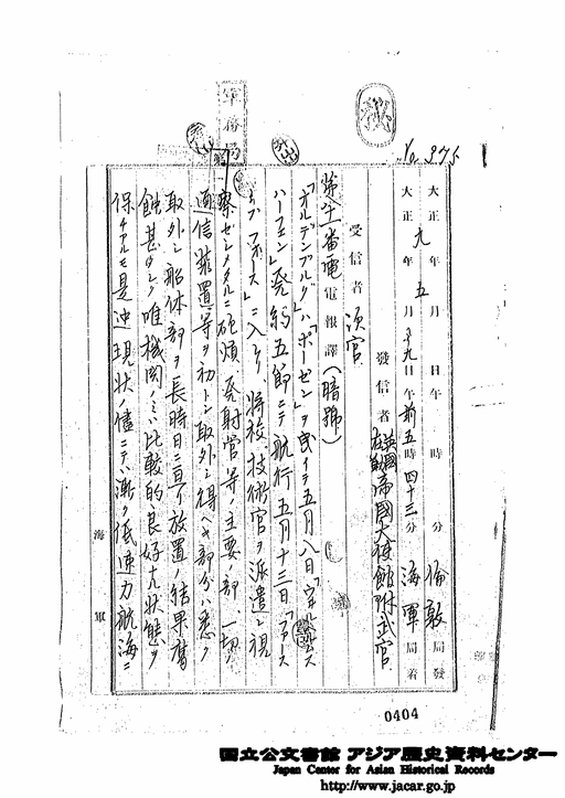 - 大正3年~9年 大正戦役 戦時書類 巻207 敵艦艇処分2止