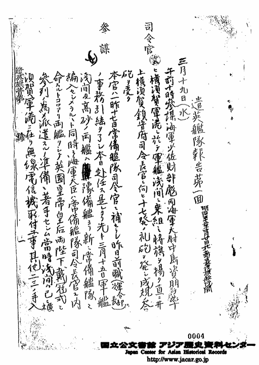 「遣英艦隊報告 第1回」JACAR(アジア歴史資料センター)Ref.C11081090700、明治35年 遣英艦隊関係書類(1) 遣英艦隊報告 軍艦浅間報告 自1回至15回(防衛省防衛研究所)