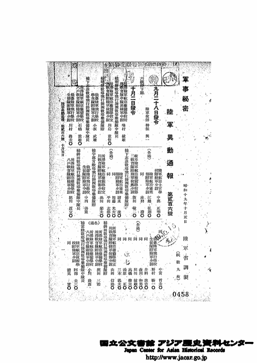- 陸軍異動通報 5/6 昭19年9月1日~10月30日