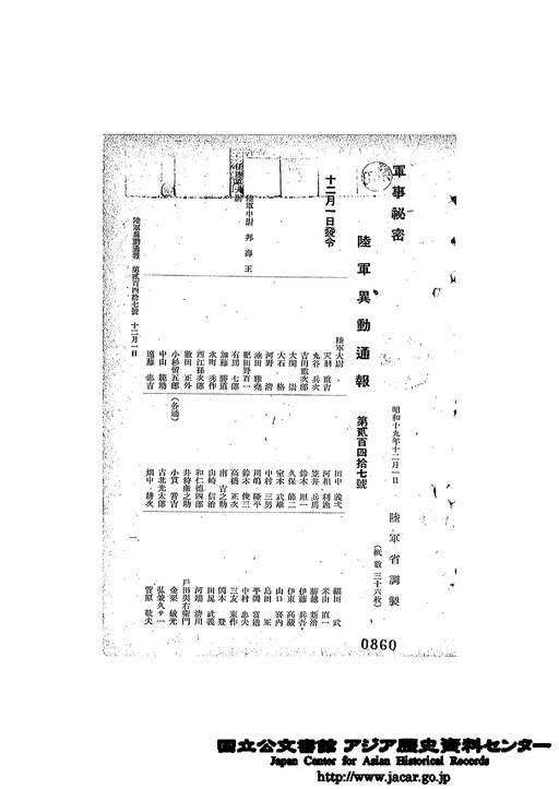 - 第247号 昭和19年12月1日 陸軍異動通報(1)