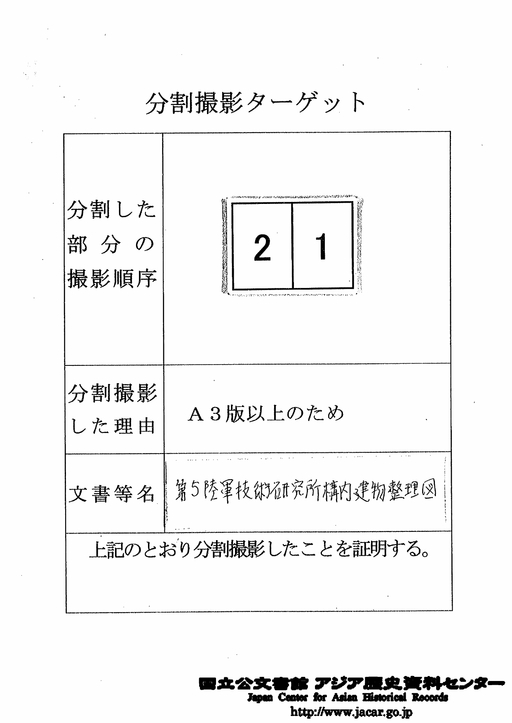 「5.第5陸軍技術研究所構内建物整理図 昭20年6月16日調製」JACAR(アジア歴史資料センター)Ref.C12122074600、技術研究所施設に関する綴 昭和20年5月(防衛省防衛研究所)