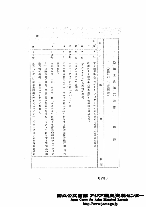 「陸軍船舶部隊略歴 その1/分割5」JACAR(アジア歴史資料センター)Ref.C12122417200、陸軍船舶部隊略歴 その1(防衛省防衛研究所)