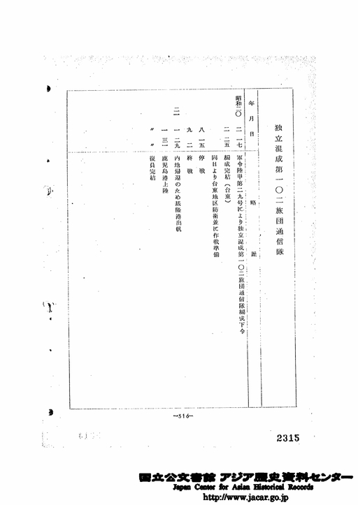 - 南方.支那.台湾.朝鮮(南鮮)方面 陸上部隊略歴(航空.船舶部隊を除く) 第3回追録
