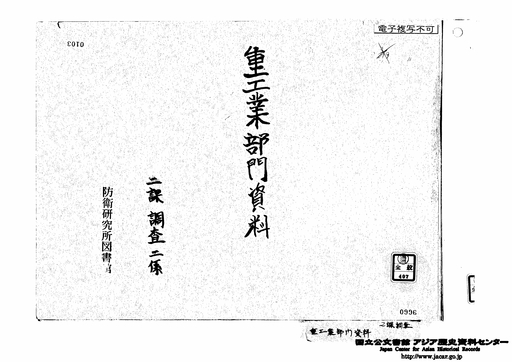 「表紙「重工業部門資料」 昭和27年1月」JACAR(アジア歴史資料センター)Ref.C13010271600、重工業部門資料 昭和27年1月(防衛省防衛研究所)