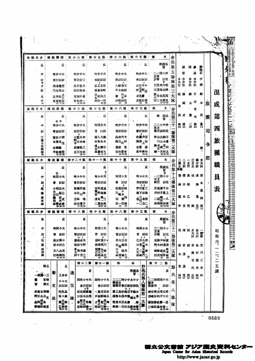 - 関東軍 第9師団 混成第4旅団職員表 昭和6年調